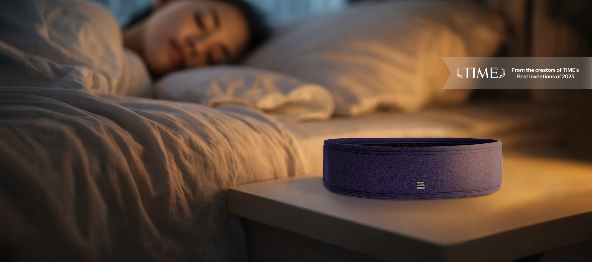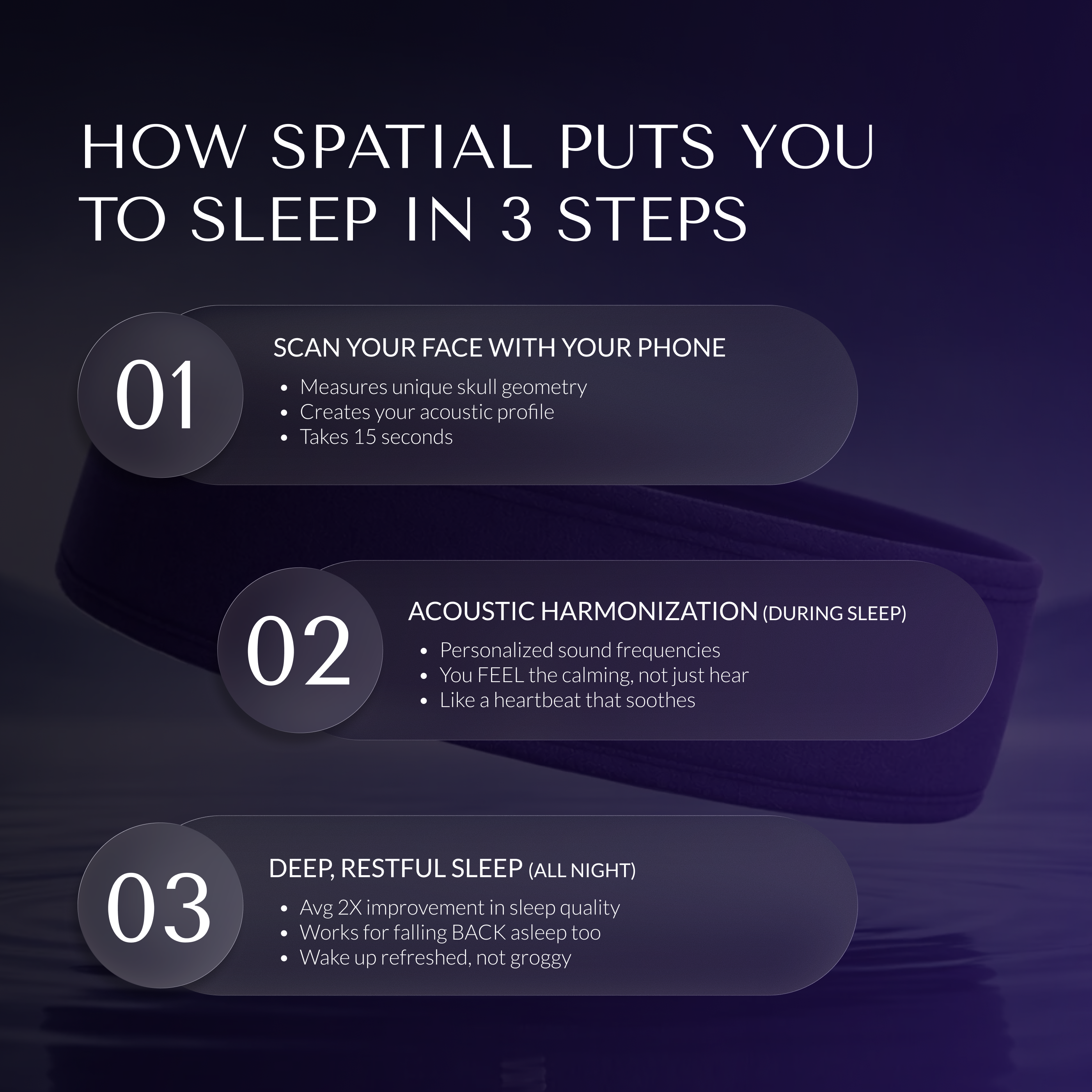 Spatial Sleep is a personalized sleep headband that uses gentle sound and vibration to help you drift off naturally.