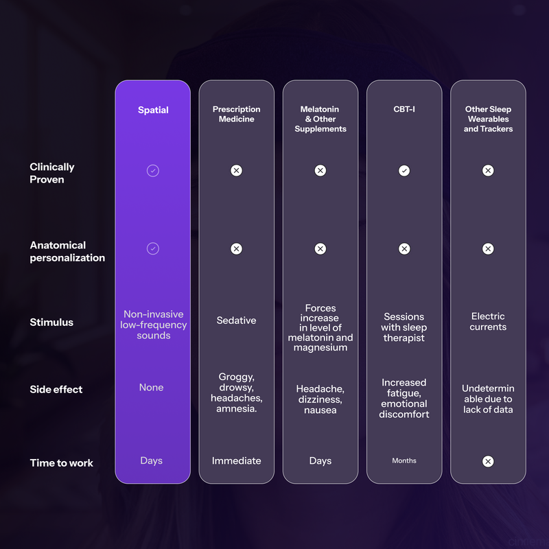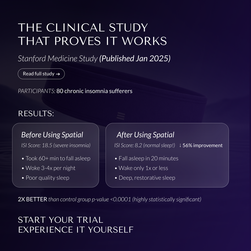 Clinically proven to help you sleep better - fast. Spatial Sleep is the only sleep wearable validated with a real clinical sleep scale in rigorous trials.